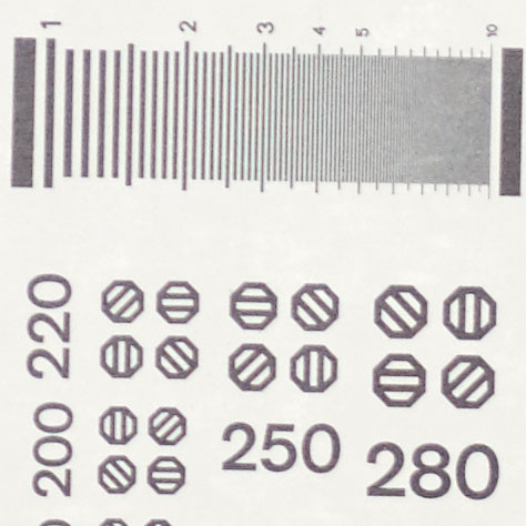 Die nachfolgenden Abbildungen zeigen die Detailschärfe verschiedener Blendeneinstellungen des M.Zuiko 45mm ƒ1.8 beim Abfotografieren des oberen Test-Charts.