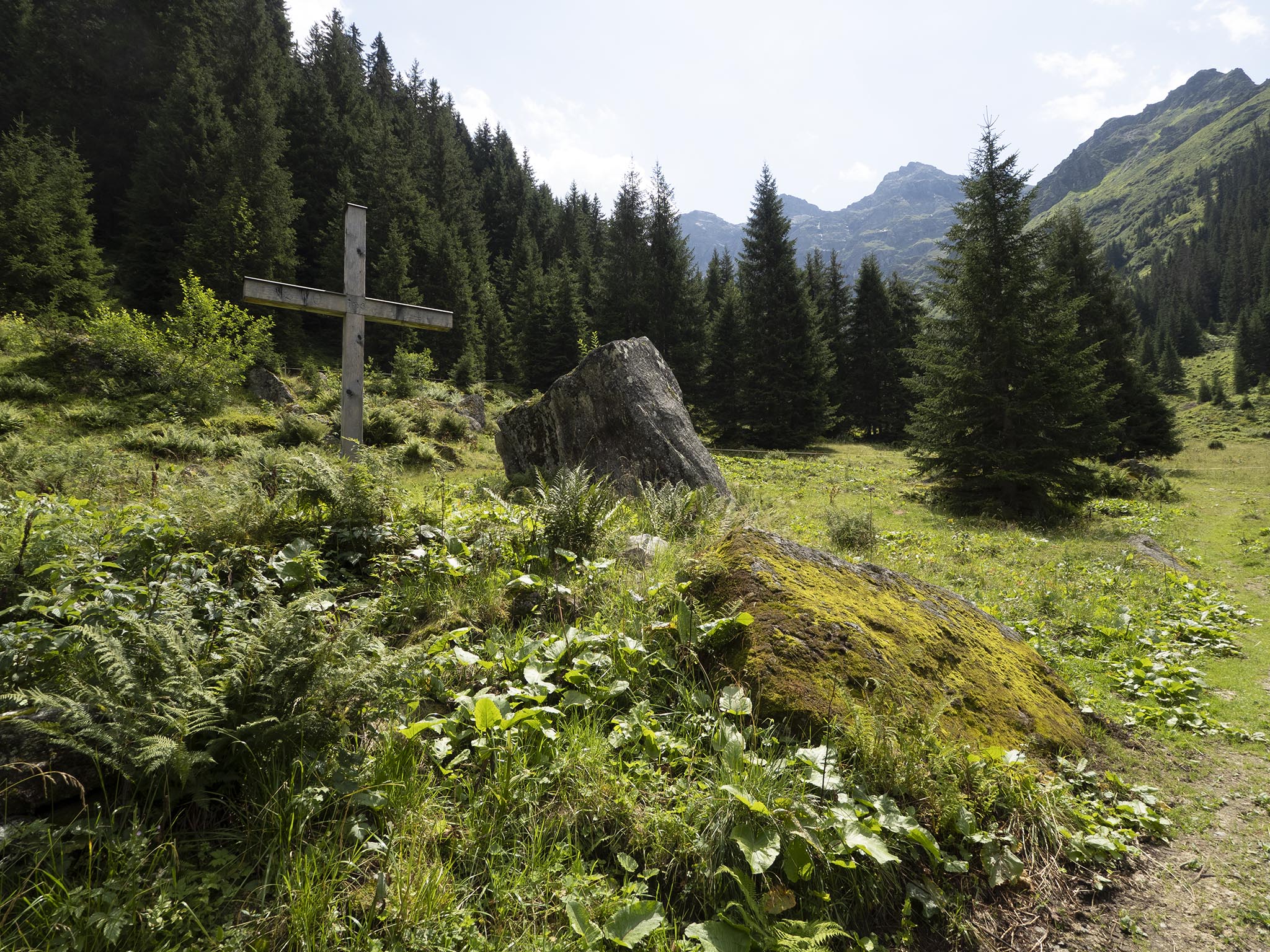 Die Gegenlichtaufnahme mit dem Kreuz beispielsweise zeigt bei 8 Bit einen ausgefressenen, in vielen Bereichen zeichnungsfreien weißen Himmel. Andere Bereich wiederum, z.B. in den Schatten der Bäume, fallen unterbelichtet schwarz aus. Tatsächlich jedoch war der Himmel für die menschliche Wahrnehmung blau wahrzunehmen, so wie es im HDR-Bild zu sehen ist. Natürlich sah der Himmel in meinen Augen nicht exakt so aus, wie in der abgebildeten HDR-Aufnahme. Allerdings noch viel weniger so, wie in der Einzelbelichtung.