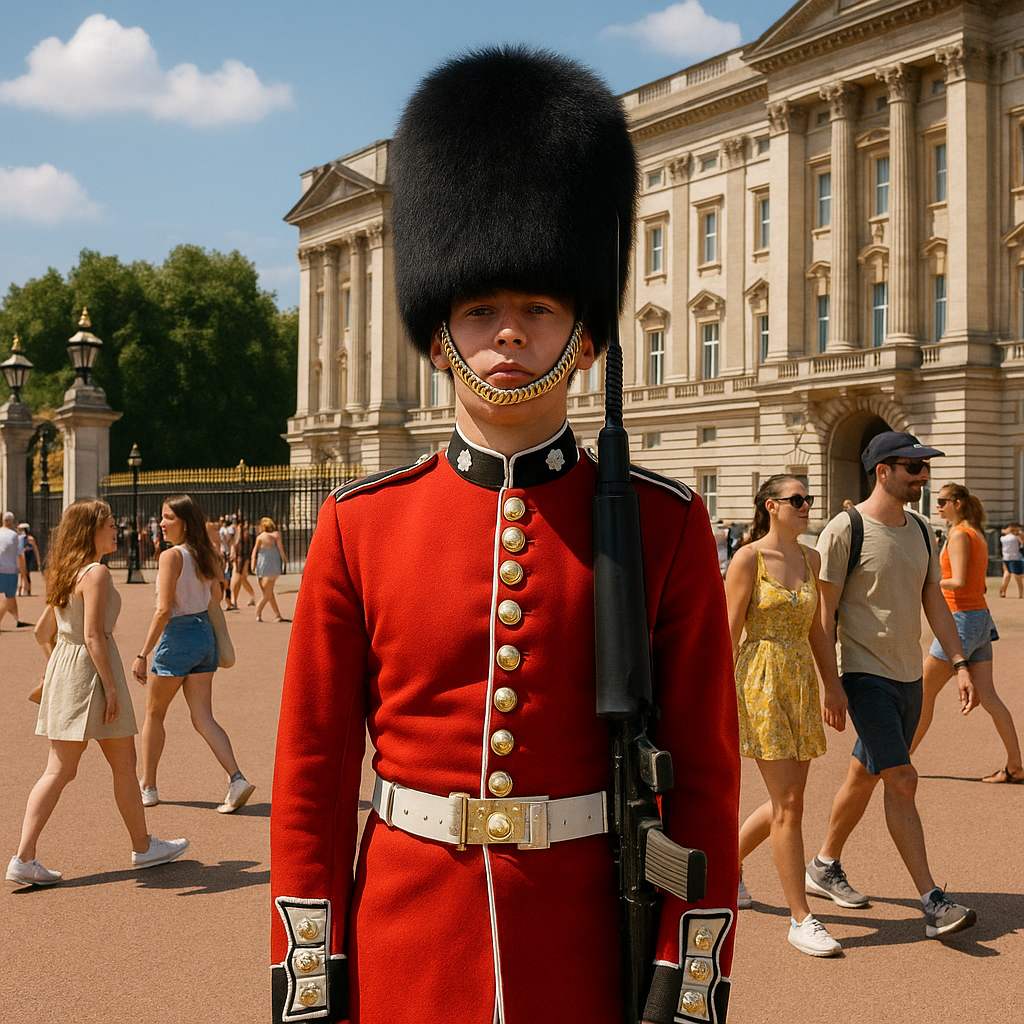 20250724_1937_Royal Guard at Buckingham_simple_compose_01k0yr33akettah2456wzs3wt1Von Markus Waeger / 25. Juli 2025